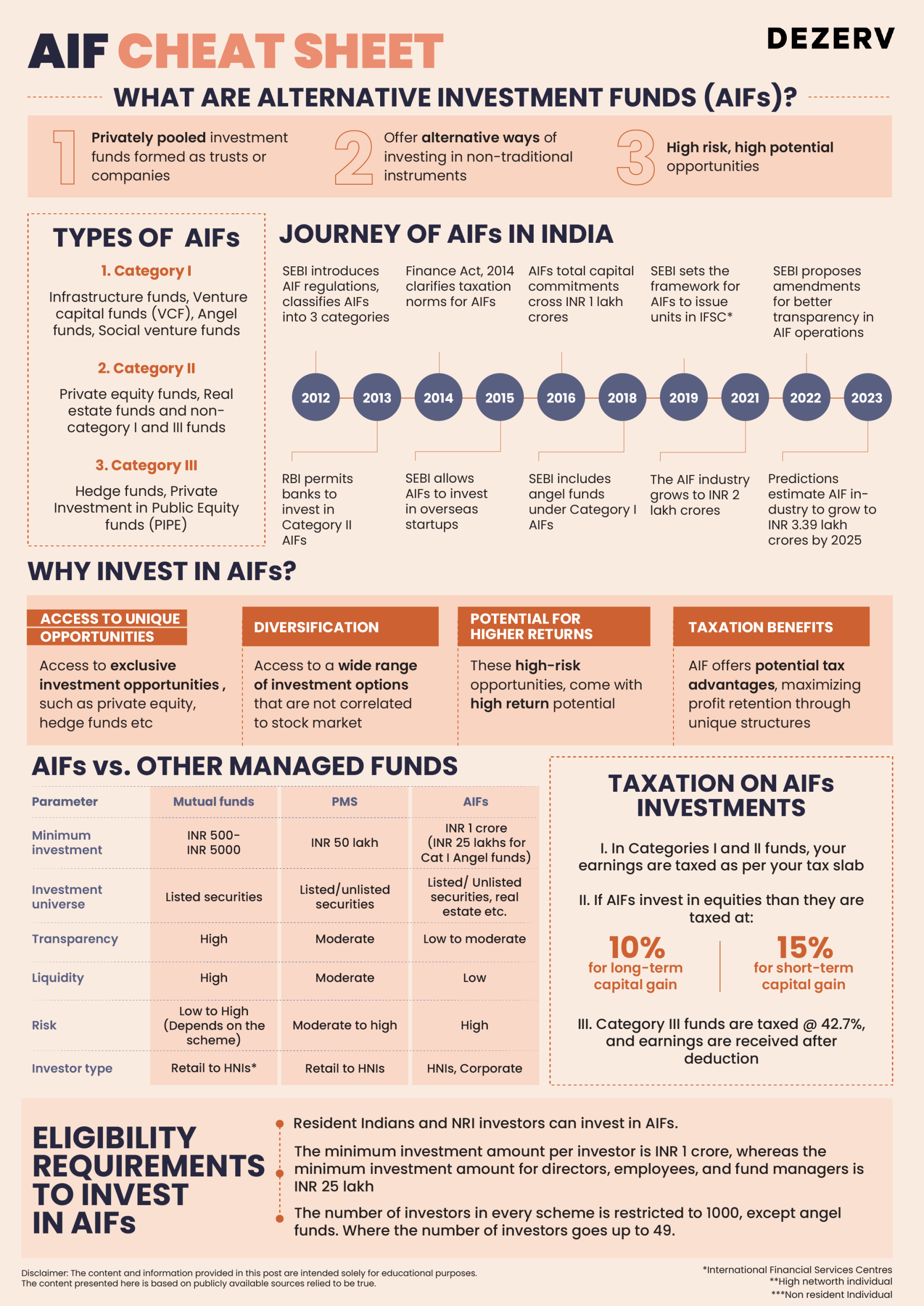 Alternative Investment Funds (AIFs) are privately pooled investment funds, which enable you to invest in alternative assets such as real estate, private companies, commodities etc.