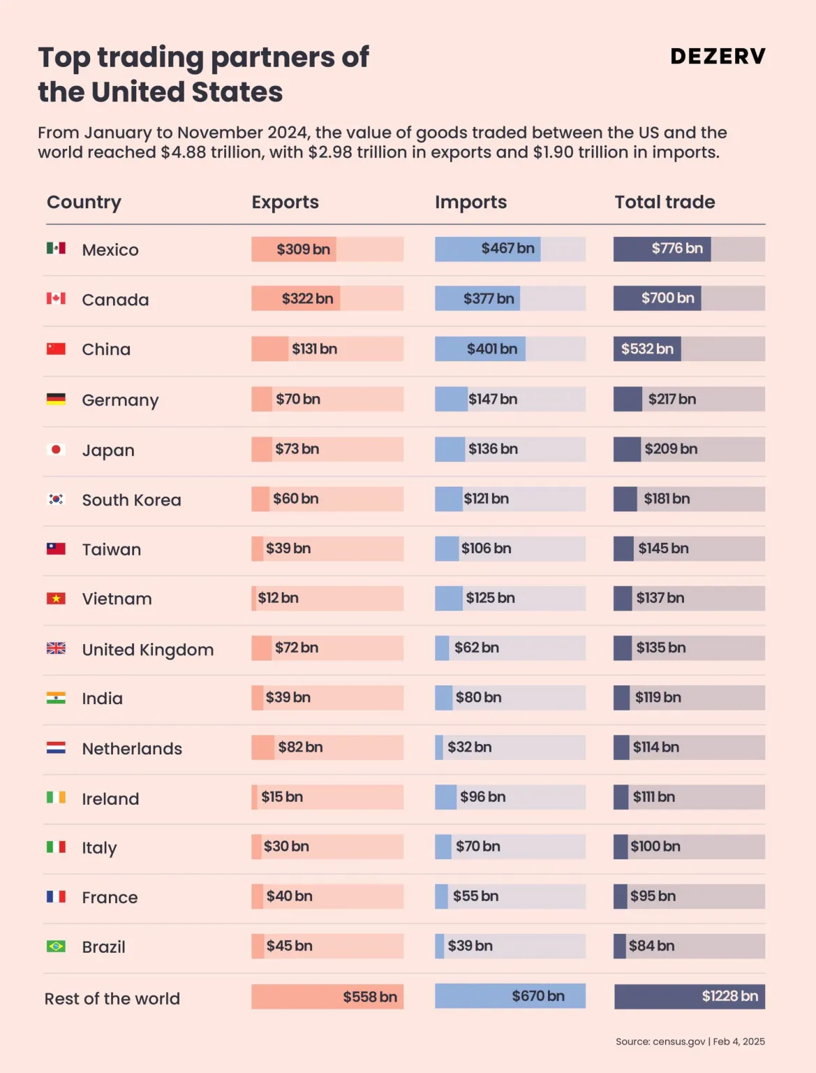The US has always been at the centre of tariff wars. Before we get into detail, here’s a look at the top trading partners of the US at present.