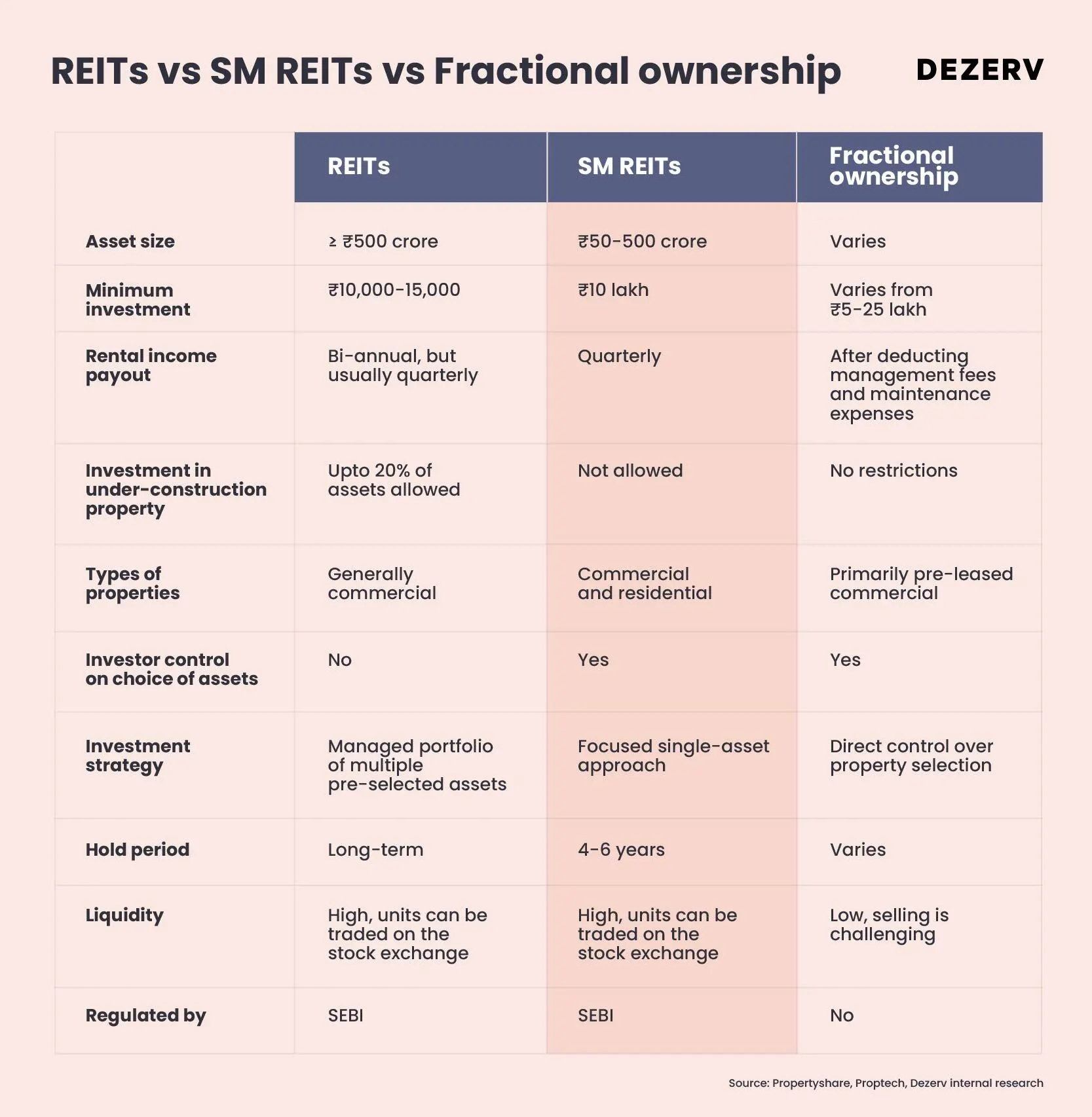 How are SM REITs different from REITs and Fractional Ownership Platforms?