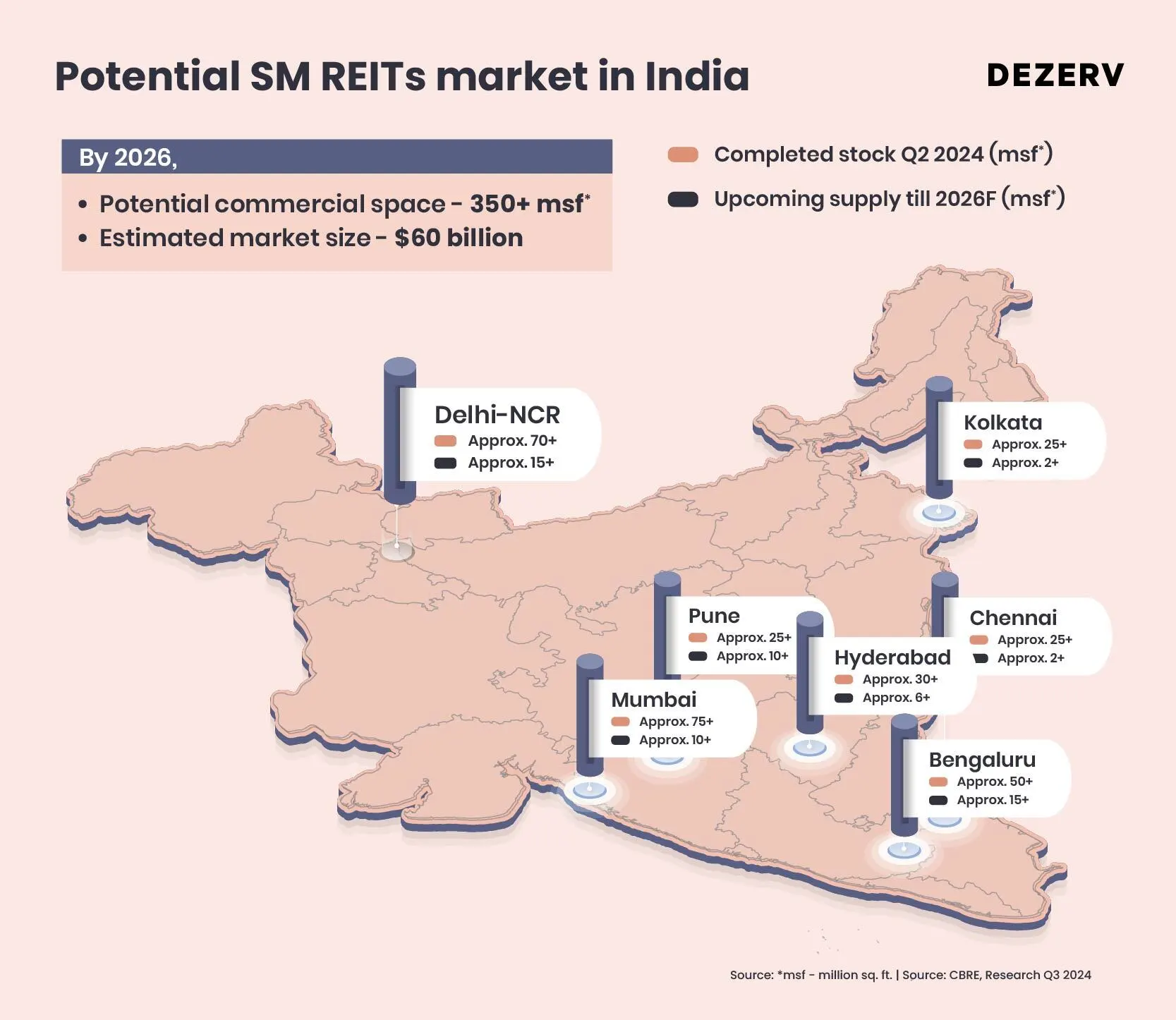 According to a CBRE report, the SM REIT market is poised to become a projected market of over USD 60 billion and/or over 350 million sq. ft. of office space by 2026.