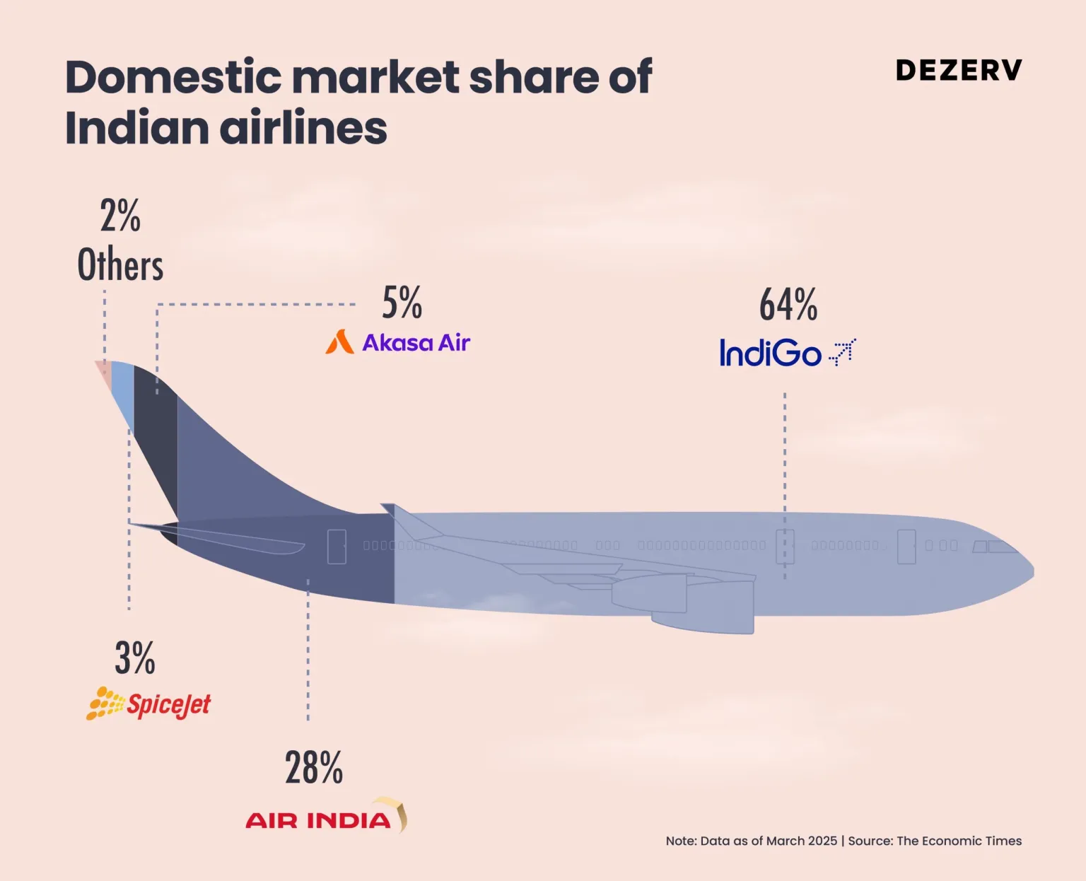 As of FY25, it operates 2,200+ daily flights, holds more than 60% of the domestic market, and runs one of the world’s youngest fleets.