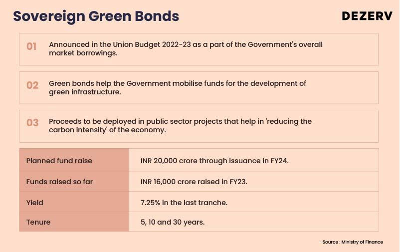 The government issued green bonds worth INR 16,000 crore in FY23 and plans to raise another INR 20,000 crore via such bonds in FY25.